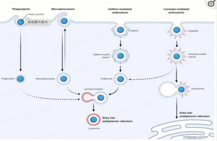 根据2020年的一项研究,大气中的一些微纳塑料由于体积小,可以被直接吸入,在呼吸道中积累,并可能穿过血脑屏障,对人类健康构成风险。微纳塑料还可以通过多种途径被细胞吸收,包括通过内吞纳米颗粒摄取,其中纳米颗粒与通道蛋白、转运蛋白发生黏附相互作用。