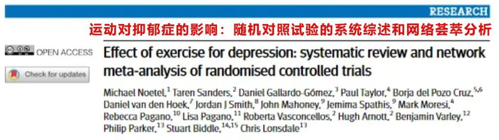 2024年1月,发表在《英国医学杂志》上一项关于运动和抑郁症关系的发现:运动对于抑郁可以起到很好的治疗效果。大家熟悉的步行或慢跑等轻度运动可以取得抑郁症的治疗效果,但非第一名;此外,力量训练、混合有氧运动、太极拳也是不错的选择。①