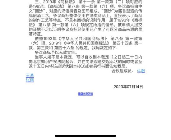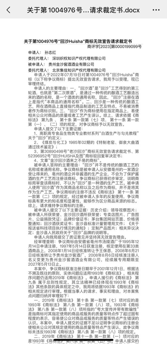 “回沙”商标无效,谁是谁的爹?