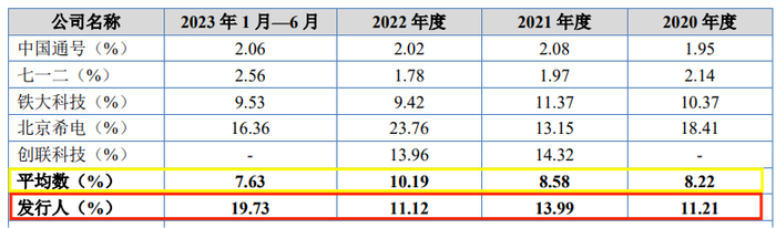 报告期各期,东方智汇同行可比公司销售费用率的均值分别为8.22%、8.58%、10.19%、7.63%。同期,东方智汇的销售费用率则分别高达11.21%、13.99%、11.12%、19.73%。