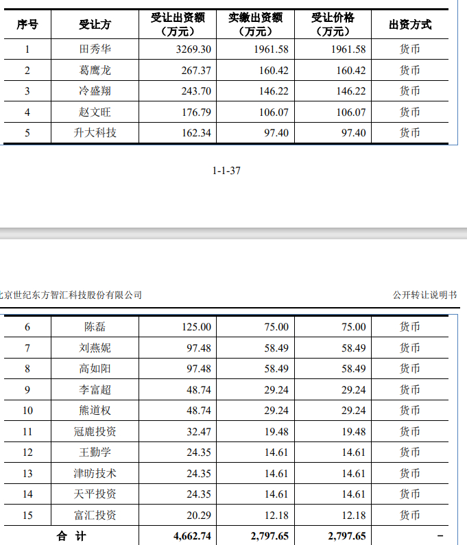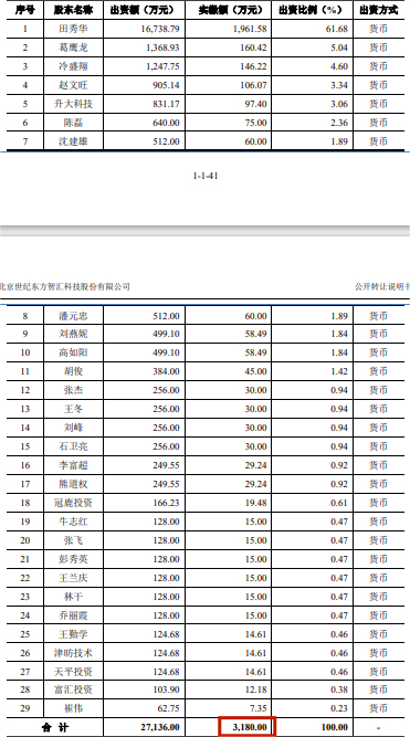 1. 世纪东方、田秀华等多次增资,但并未实缴