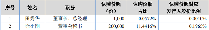 据瑞财经《预审IPO》穿透招股书发现,此次员工持股计划的参与对象中,还包括东方智汇董事长、总经理田秀华及董事会秘书徐小刚,二人分别认购了1000份额及20万份额,认购份额对应东方智汇的股份比例分别为0.0010%、0.1965%。若东方智汇顺利上市,二人此次认购的份额分别价值7320元及143.84万元。