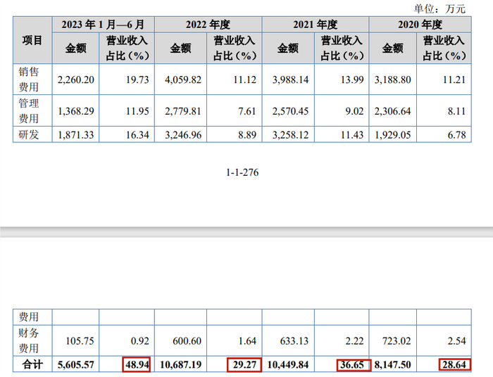 从销售费用构成来看,人力成本于各期分别为1,538.95万元、1,941.61万元、2,045.4万元及1,282.99万元,占销售费用的比例分别为48.26%、48.68%、50.38%和56.76%。