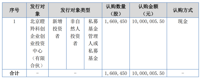 挂牌后,2023年5月,东方智造进行了一次定向增发,北京瞪羚科创企业创业投资中心(有限合伙)(以下称“瞪羚科创”)以5.99元/股的价格认购了东方智造166.95万股。