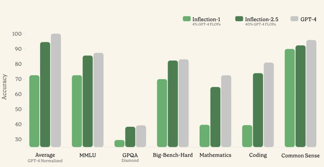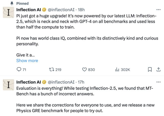 当OepnAI和马斯克连日互杠、Google因文化偏见麻烦缠身、号称抢走GPT-4王位的Claude 3全力瞄准企业级部署的时候,在另一个角落,致力于「为每个人开发服务型AI」的人工智能初创公司Inflection AI,悄悄更新了他们的聊天机器人Pi,以及为之提供支持的新一代大模型Inflection-2.5。