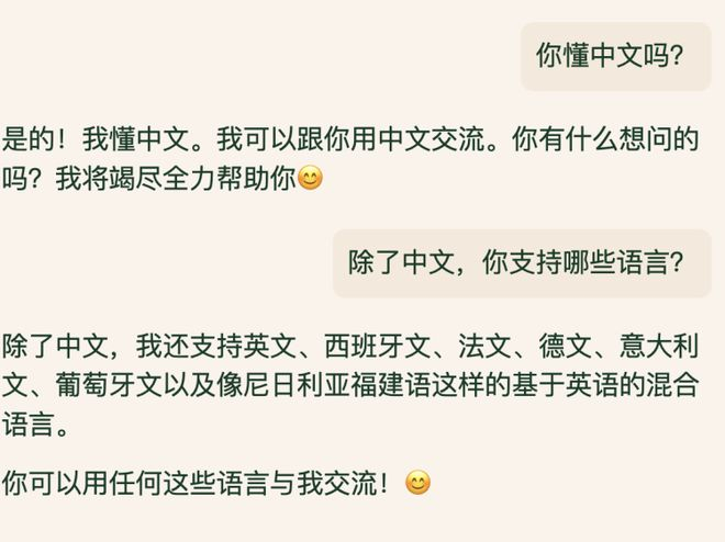 Pi的一个优点是能在同个线程中灵活切换不同话题和要求,像真人一样handle你的跳跃性思维。我们换成中文和Pi交流,它显然应对自如,只不过“尼日利亚福建语”属实有点懵。有时问太复杂的中文问题会卡在一半,发音也比较像刚落地中国一个月的老外,汉语水平有待加强。