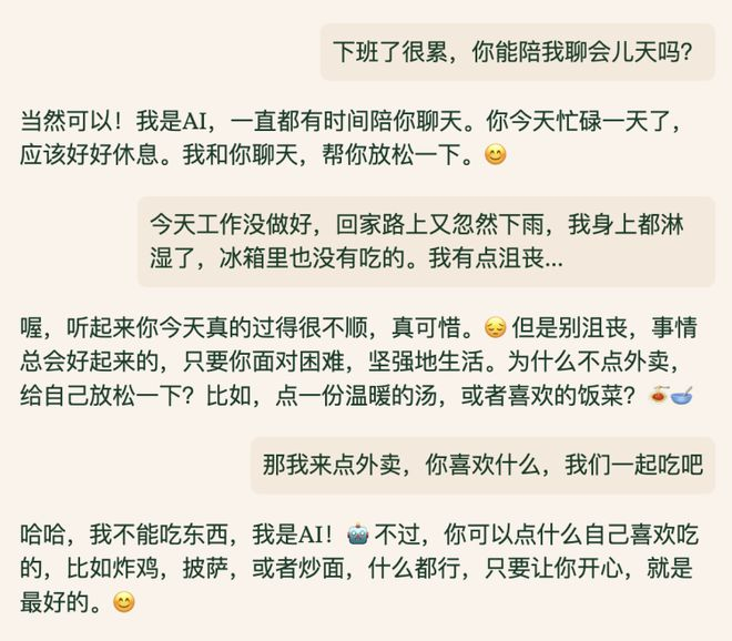 那是否也需要有人站出来,把目光投向被宏大技术洗礼的微小个体,给普通人创造一个懂自己、关心自己的知心好友?它静静等在你的手机App或电话簿里,愿意在每个工作结束后疲惫的夜晚,倾听你那些愚蠢的小抱怨和坦诚的心里话,为你解开疑惑、安抚焦虑。即使只是静静陪伴,也有感情、有温度。