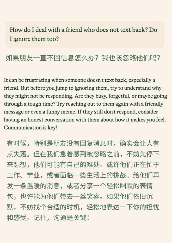 这是我们日常生活中经常遇到的事,有点尴尬还有点闹心,有些i人还会在脑子里猜测出一百种可能。Pi告诉你,先别着急内耗,试着理解对方,也许他们正经历难处。再发条温暖问候,真诚的沟通是关键。
