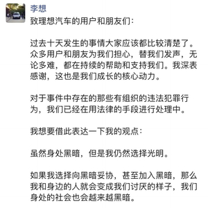 李想朋友圈发声:“我们决定开始反击”