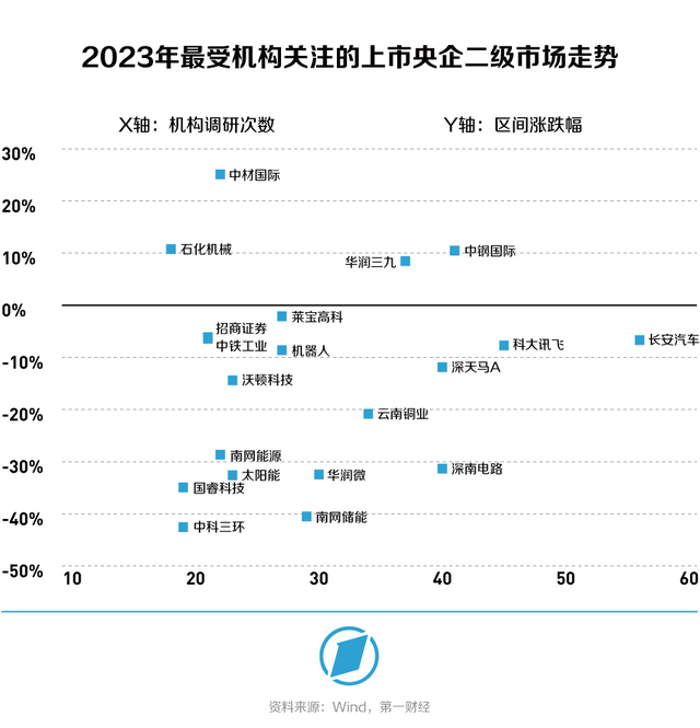 根据WIND统计,2023年,有308家上市央企接受过机构调研,次数共计达到1988次,平均每家公司接受了6.5次调研。与A股的平均水平相当,可以认为,上市央企并没有得到机构投资者的特别关注。