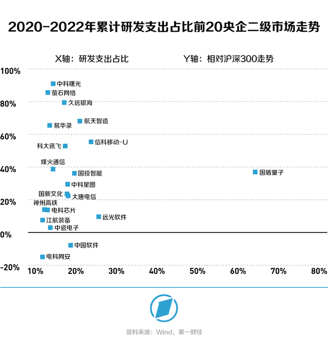 分析研发投入力度头部的20家央企数据可以发现,大手笔的研发投入,并没有拖累公司净利润的增长,更谈不上影响公司股价表现。相反,重视研发的公司,2023年在二级市场上的表现也相对较为优异,仅2家跑输沪深300指数。
