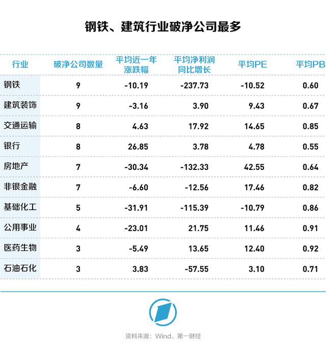 截至1月31日,PB低于1的上市央企共有76家,从行业分布来看,建筑装饰、钢铁行业央企破净家数最多,均为9家;其次为银行和交通运输,均有8家公司破净;非银金融和房地产行业破净公司也较多,都达到了7家。这些行业的公司,二级市场走势也偏弱,除银行平均上涨了约26%之外,其他行业平均下跌幅度在3%-30%不等。