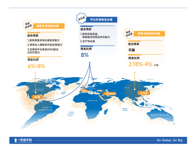 眼看Temu和速卖通推出全托管模式,商家规模和整体订单量快速增长后,TikTok Shop也坐不住了,2023年上半年开始在沙特、英国和美国上线全托管模式——货品上,商家只需要备货到TikTok Shop的国内仓库,仓储、配送、售后服务由平台托管;店铺上,商家可以选择自己运营或者平台代运营;定价上,商家提供供货价,商品售价由平台决定。
