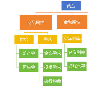 首先我们来了解下黄金的本质,作为家喻户晓的作为稀缺稳定的贵金属,黄金不仅具有商品属性还具有金融属性和货币属性,受到的影响因素包含了供给、需求、实际利率以及美元指数等。