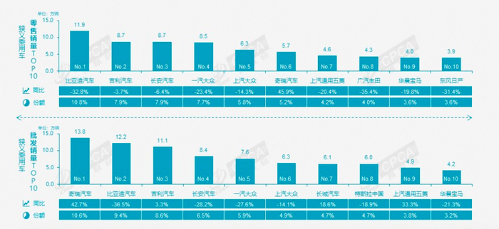 按厂商排名来看,零售销量前三的厂商基本已经属于中国品牌。2月份排名前三的厂商分别为比亚迪、吉利、长安。随后是南北大众和奇瑞。