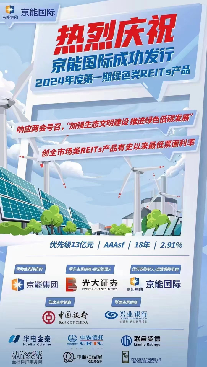 2.91%!京能国际绿色类REITs成功发行