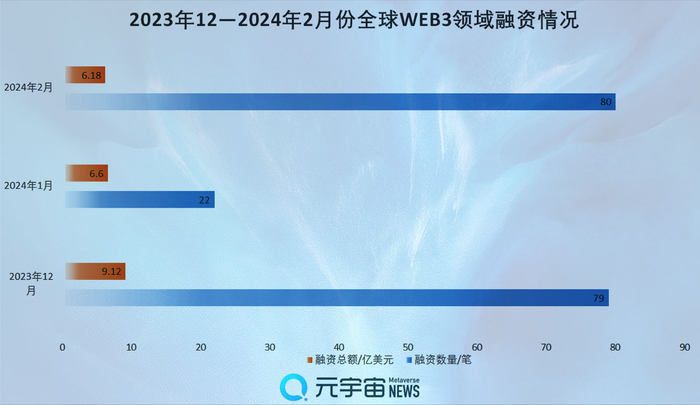 财联社3月11日讯(记者 徐赐豪),据财联社创投通统计, 2月份全球Web3领域共有80笔融资事件,融资总额达6.13亿美元,融资数量融资总额基本和1月份持平。