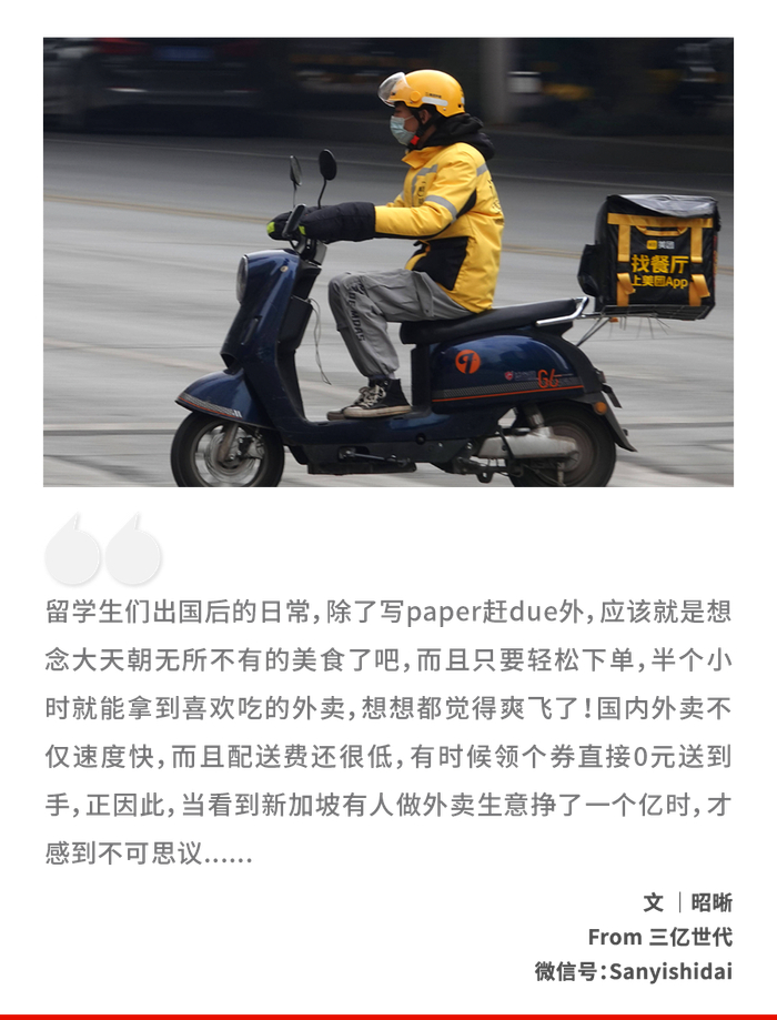 想象这样一个场景:闷热潮湿的南洋午夜,国内朋友发来锅包肉和辣子鸡的靓照馋你,你求之不得、辗转反侧。于是乎,横卧床榻的你点开外卖app,打算无论如何也要斥巨资满足一次自己在异乡的口腹之欲。