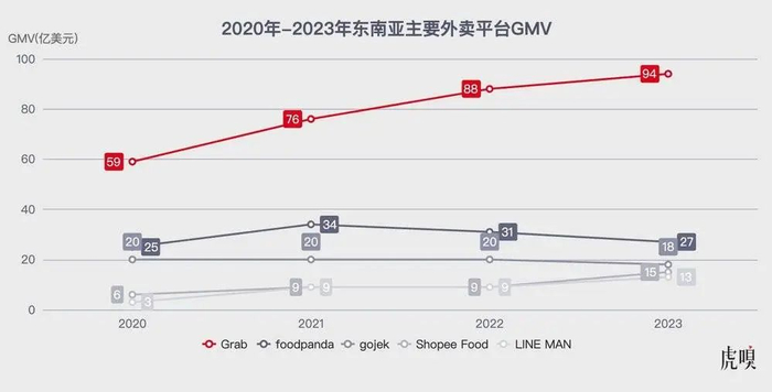墨腾创投最新发布的《东南亚送餐服务业报告》指出,截至2023年底,Grab 是东南亚最大送餐平台,占整体市场商品交易总额的55%(94亿美元)。foodpanda 及 gojek 分占15.8%及10.5%,其市场商品交易总额分别下跌12.9%及10%。虾皮(Shopee Food)及 LINE MAN 各占8.8%及8.1%,虾皮成长约6成,LINE MAN在泰国亦取得双位数增幅。