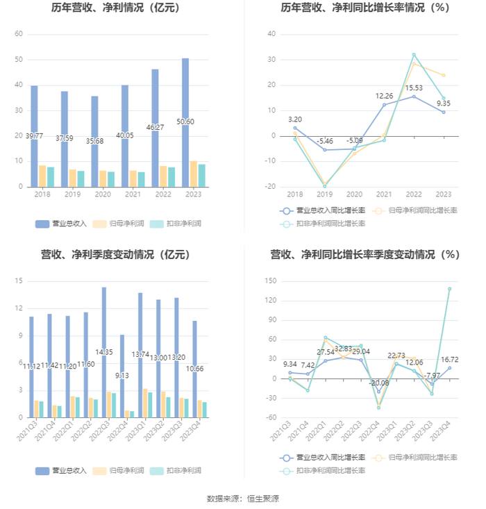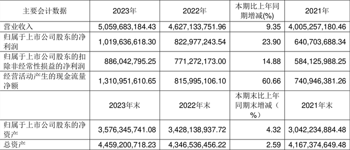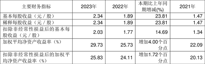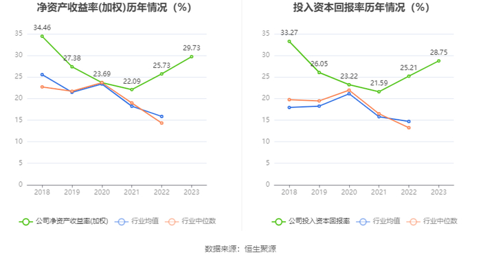 数据显示,2023年公司加权平均净资产收益率为29.73%,较上年同期增长4.00个百分点;公司2023年投入资本回报率为28.75%,较上年同期增长3.54个百分点。