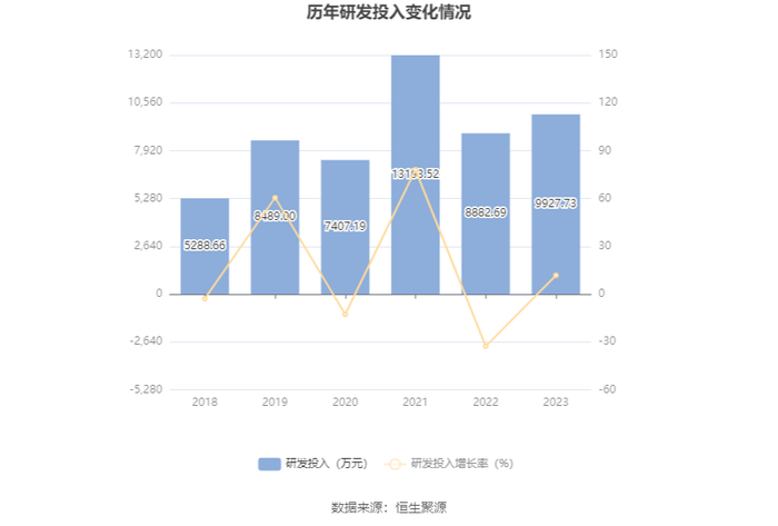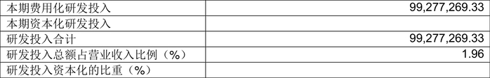 2023年全年,公司研发投入金额为9927.73万元,同比增长11.76%;研发投入占营业收入比例为1.96%,相比上年同期上升0.04个百分点。此外,公司全年研发投入资本化率为0。