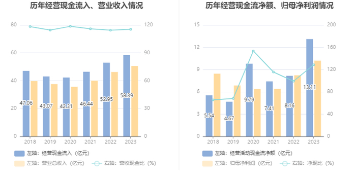 2023年,公司营业收入现金比为115.40%,净现比为128.57%。