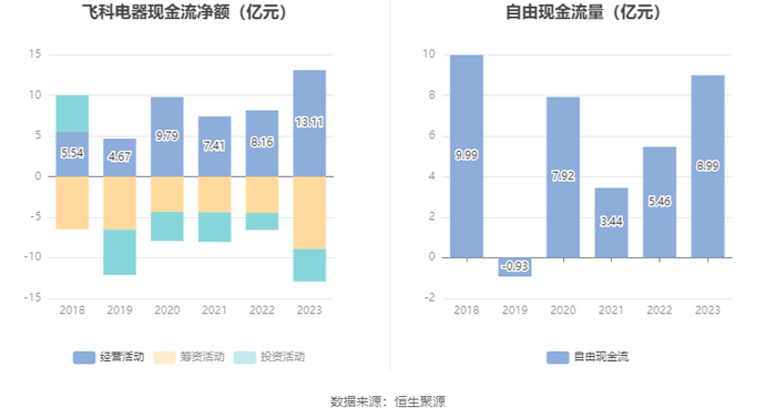 进一步统计发现,2023年公司自由现金流为8.99亿元,相比上年同期增长64.72%。