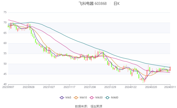 数据统计显示,飞科电器近三年营业总收入复合增长率为12.35%,近三年净利润复合年增长率为16.90%。