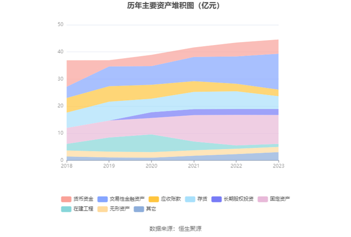 资产重大变化方面,截至2023年年末,公司交易性金融资产较上年末增加30.85%,占公司总资产比重上升6.40个百分点;存货较上年末减少27.52%,占公司总资产比重下降4.40个百分点;固定资产较上年末减少5.29%,占公司总资产比重下降1.98个百分点;其他流动资产较上年末增加241.68%,占公司总资产比重上升1.18个百分点。