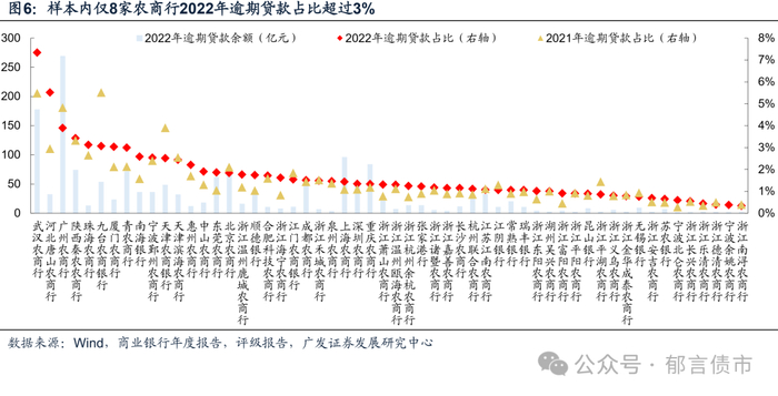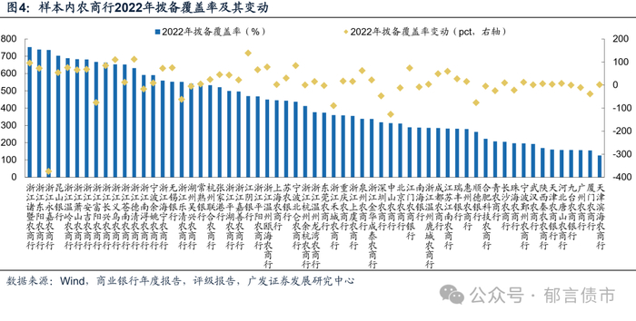 而广东、山东和湖北的多家银行,房地产贷款占比偏高,地产行业下行冲击下不良贷款规模同比增幅较大,导致不良贷款率有所上升而拨备覆盖率同比下降。不过,这些银行普遍资产规模较大,具有竞争优势,并且2022年不良率均在2.7%以下,拨备覆盖率多超过200%,仍然优于全国农商行平均水平。
