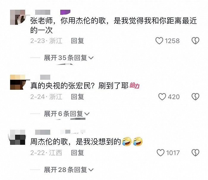 60后播音员张宏民则因一首BGM快速拉近了与年轻网友的距离,在今年2月发布的一则泉州游玩视频中,他以照片集锦的形式向网友展示了自己的旅途所见,还配上了周杰伦经典作品《不能说的秘密》。没想到,网友却被这首BGM勾起了兴趣,“张老师,你用杰伦的歌,是我觉得和你距离最近的一次。”