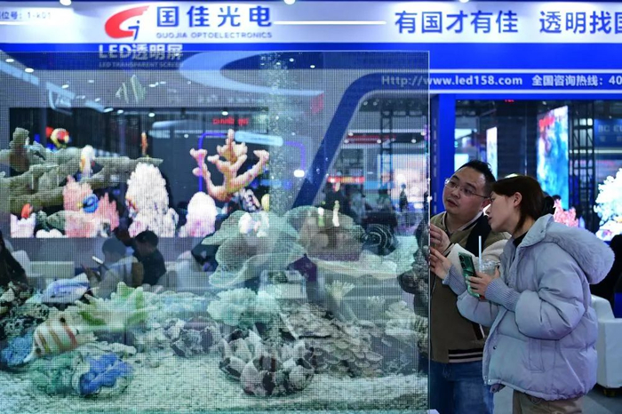 在近日举办的第21届深圳国际LED展上,各大LED企业使出浑身解数向参展人士介绍各自最新的显示产品。证券时报记者在现场看到,不少企业都展示了由数块LED拼接而成的超大尺寸显示屏,尤其是部分显示屏还拥有弯折或卷曲功能,带来了极为惊艳的视觉体验;同时,一些企业还推出了LED透明屏和地毯屏,透明屏顾名思义就是在没有显示文字或动画的部分,可以透过显示屏看到背后的场景,而地毯屏则是将显示屏平铺在地面,人可以直接站立其上,工作人员表示该款产品汽车压过去都没问题。