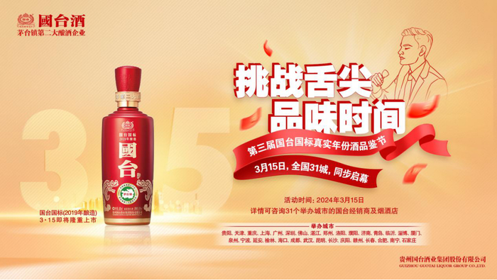 在白酒行业,就有一家企业连续多年选择在3·15国际消费者权益保护日发布新品。从2017年开始,国台每年3月15日都会发布新酿造年份的国台国标酒,今年已是第八年。作为满五年真实年份酱酒的代表性产品,国台国标酒已经成为年销售额数十亿元、品牌价值超千亿元的超级品牌。