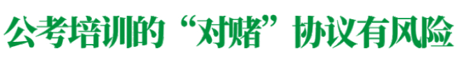 本案中,公务员考试培训机构与消费者所签订的培训服务协议有一定的“对赌”性质存在,如果法律没有作出禁止性的强制规定,这类“对赌”性质的协议就会在教育培训市场普遍存在。这种“对赌”协议,其风险系于教育培训机构的“信用”及其运营是否规范、运营资金是否存在“高杠杆”等因素。而其产生的相关风险,无一例外都由弱势的一方消费者承担,于是,类似的纠纷也在公务员考试培训领域时有发生。