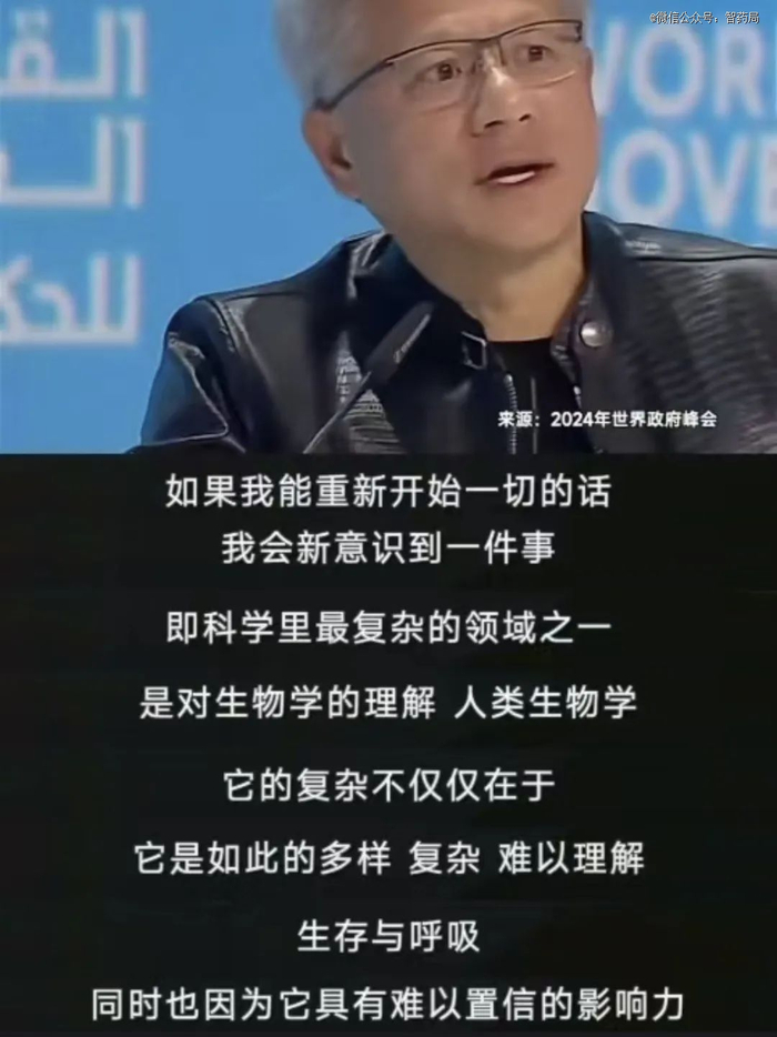 而在同一场“世界政府峰会”的会议中,黄仁勋明确提出的观点是:人人都必须学会计算机的时代过去了,人类生物学才是未来。