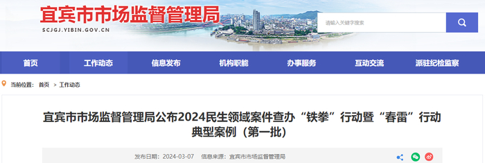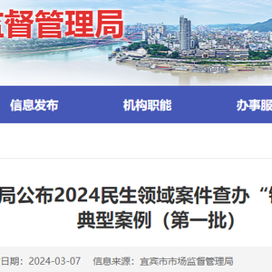 四川省宜宾市市场监督管理局公布2024民生领域案件查办“铁拳”行动暨“春雷”行动 典型案例(第一批)