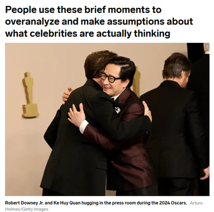 当地时间3月10日,美国演员小罗伯特·唐尼和艾玛·斯通分别获得奥斯卡“最佳男配角”以及“最佳女主角”,上届该奖项得主关继威、杨紫琼分别为两人颁奖。由于两段现场视频显示,小罗伯特和艾玛二人领奖时没有和关继威、杨紫琼互动,不少网民在社交媒体指责二人涉嫌“歧视亚裔”。