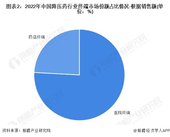 从终端市场来看,2022年,中国降压药医院终端销售额占比近76%,药店终端销售额占比约24%。