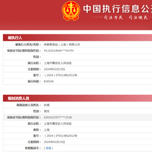 中国执行信息公开网显示,近日,钟薛高食品(上海)有限公司及其法定代表人林盛被限制高消费,执行法院为上海市嘉定区人民法院。关联案件流程显示,此前,该公司已成被执行人,执行标的81.81万元。此外,该公司旗下分支机构已全部注销。