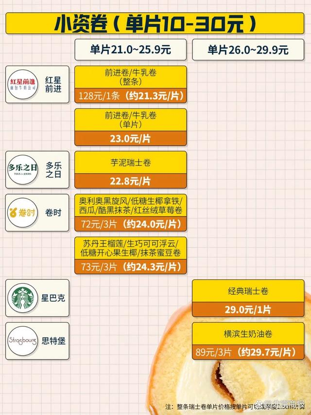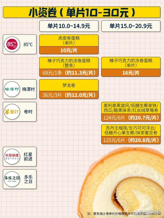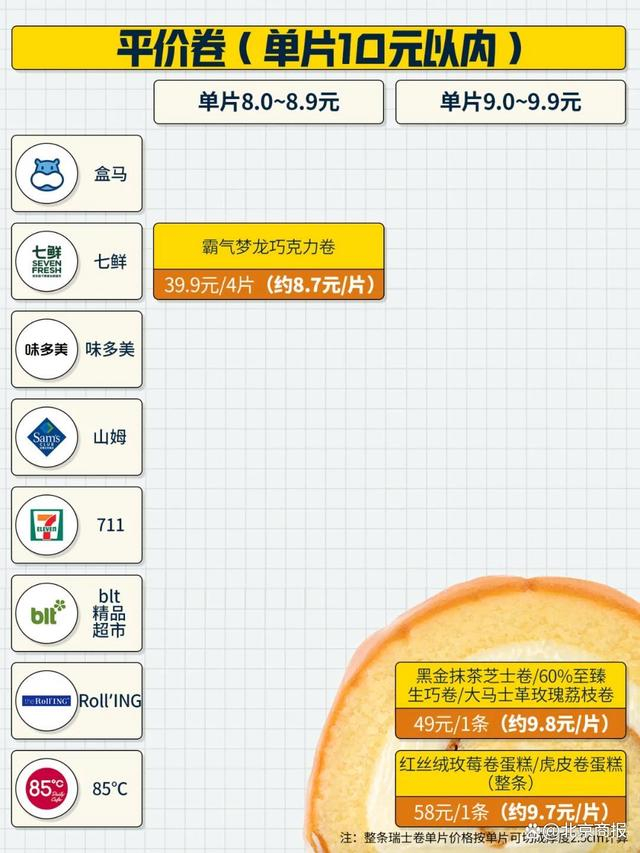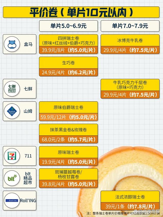 市售瑞士卷的价格后