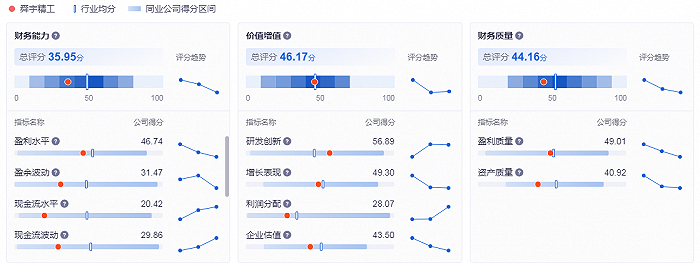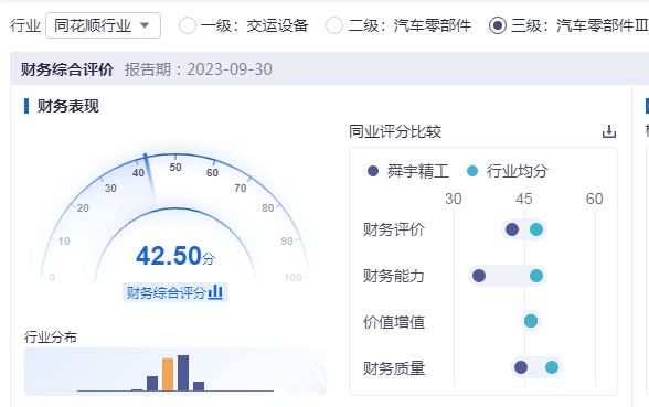 作为超小盘正宗智能驾驶+机器人概念股,舜宇精工的财务表现却令人失望。根据同花顺行业分类,其财务综合评分仅为42.5分,财务能力、价值增值、财务质量均落后于同行。