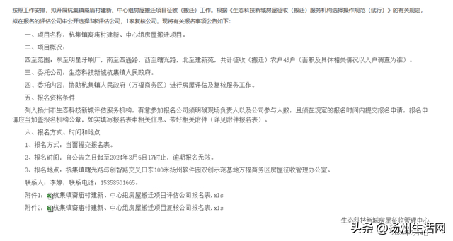 3、征地程序:成片开发所涉及的土地征收工作,扬州市自然资源和规划局生态科技新城分局将严格按规定履行征地报批前告知、现状调查及确认、听证、公告等程序。