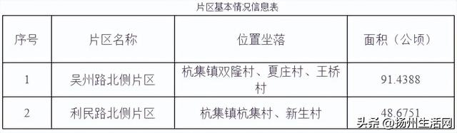 方案包含2个片区,为吴州路北侧片区、利民路北侧片区,均位于杭集镇。