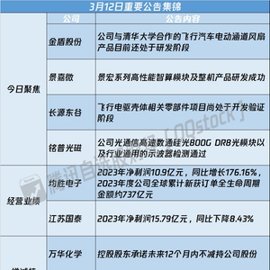 1、均胜电子:2023年净利润10.9亿元,同比增长176.16%,2023年度公司全球累计新获订单全生命周期金额约737亿元