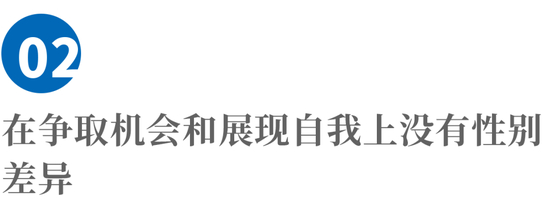我非常幸运,从小没有被灌输必须处于一个支持和依附性的位置去行事的观念,相反,我从小受到的教育就是男女平等,尽管我们各自的特点不同,但在争取机会和展现自我这方面,我们都应该勇往直前。
