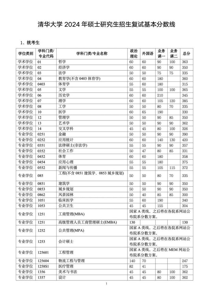 北京大学2024年硕士研究生招生复试基本分数线正式发布: