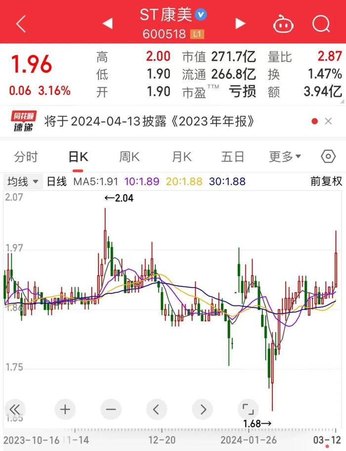 今年2月初,ST康美发布业绩预告,预计2023年将实现扭亏为盈,此后公司股价持续多个交易日涨停或飘红。自2020年托管团队入驻以来,ST康美首次盈利,预计2023年实现净利润9000万元到1.35亿元,同比将实现扭亏为盈。