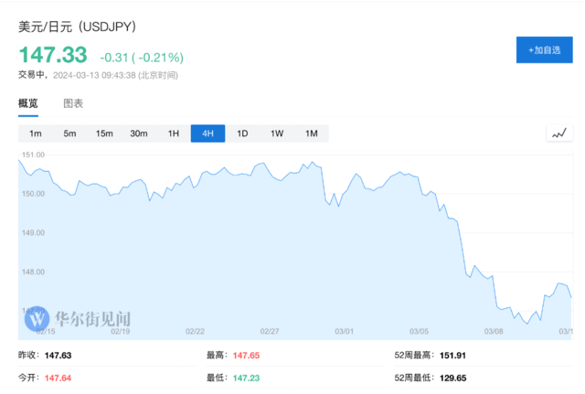 日元涨势扩大,日元兑美元小幅走高,最高报147.26。