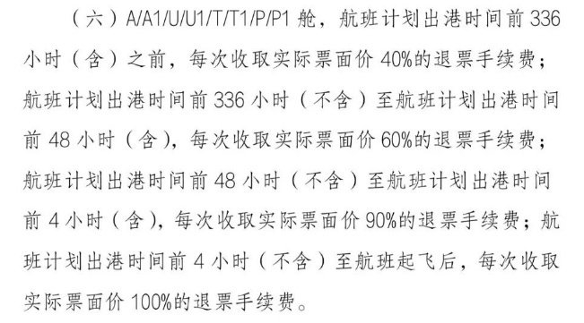 随后,潮新闻记者查阅了民航局消费者事务中心关于国内航空公司退改签及行李运输规则,看到天津航空在自愿退票部有相应说明,A/A1/U/U1/T/T1/P/P1舱确实按照该标准执行退票。
