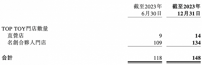 此外,最新数据的148家门店,其中绝大部分都是属于名创合伙人门店,直营店铺数量仅为14家,对比截止2023年Q2的数据,过去两个季度,TOP TOY的直营店增长了5家,合伙人门店则增长达25家。据了解截至2023年6月30日及2023年12月31日,分别有18位及15位名创合伙人经营TOP TOY门店。也就是说,到去年年底,TOP TOY的134家门店由15位名创合伙人掌握。